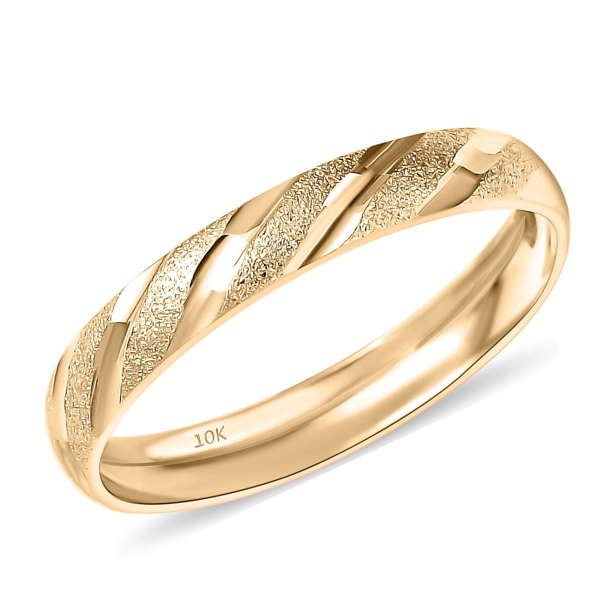 Add distinctive style to your collection with this band ring in 10K yellow gold. The textured and polished surfaces create a captivating contrast with every movement. Crafted for elegance and luxury, this gold ring offers timeless appeal. Make a statement with a piece that reflects your sophisticated taste.