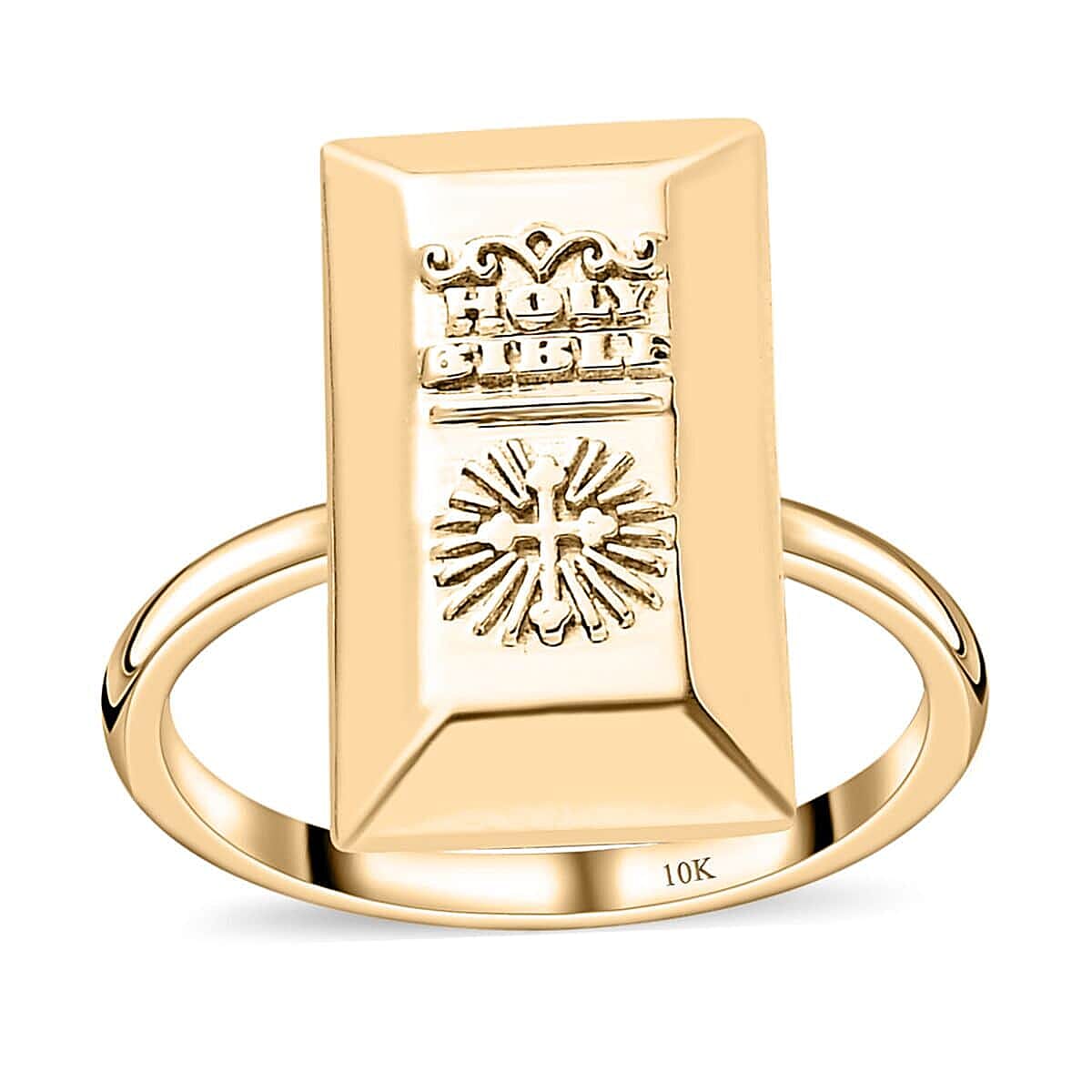 10K Yellow Gold Holy Bible Bar Ring (Size 10.0) 2.30 Grams
