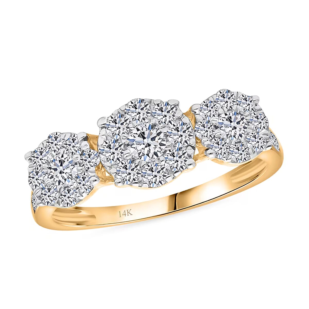 10K Yellow Gold Luxuriant Lab Grown Diamond G-H SI Trilogy Floral Ring (Size 6.5) 1.00 ctw
