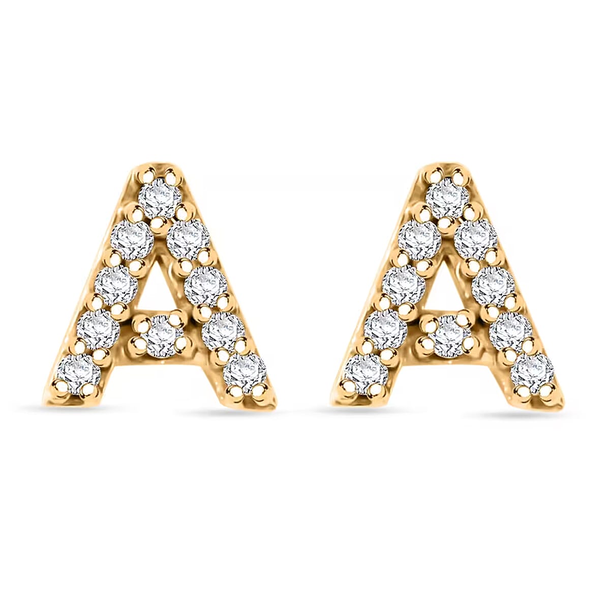 10K Yellow Gold Luxuriant Lab Grown Diamond Initial A Earrings 0.10 ctw