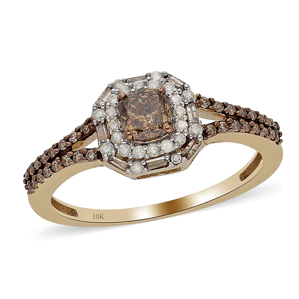 Bring a treasure-worthy ring home and add an enchanting appeal to your personality! This stunning ring features natural champagne and white diamond. This versatile accessory in 10K yellow gold helps us look more put together in under a few minutes while giving us the right amount of shimmer to catch people's attention.