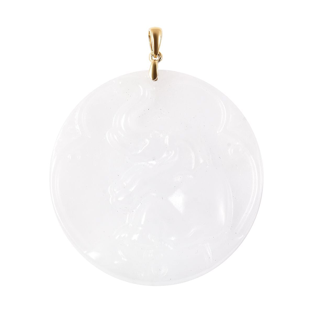 Inspired by the carved gemstone jewelry, this white jade pendant is intricately carved with creature motifs. This white jade-carved pendant is not less than a masterpiece. A skilled artisan meticulously designs the fabulous piece of jewelry to make it a perfect blend of beauty and craftsmanship. This pendant is crafted in 10K yellow gold for durability. White jade symbolizes purity and moral integrity, even indestructibility. Let this necklace be the enchanting companion to all of those beautiful apparel in your wardrobe.