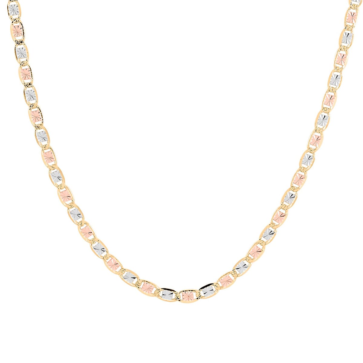 10K Yellow, White and Rose Gold 1.85mm Valentino Star Chain Necklace 16 Inches 1.75 Grams