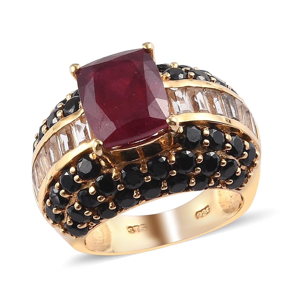 Niassa Ruby (FF) and Multi Gemstone Ring in 14K Yellow Gold Over Sterling Silver (Size 8.0) 9.40 Grams 12.30 ctw