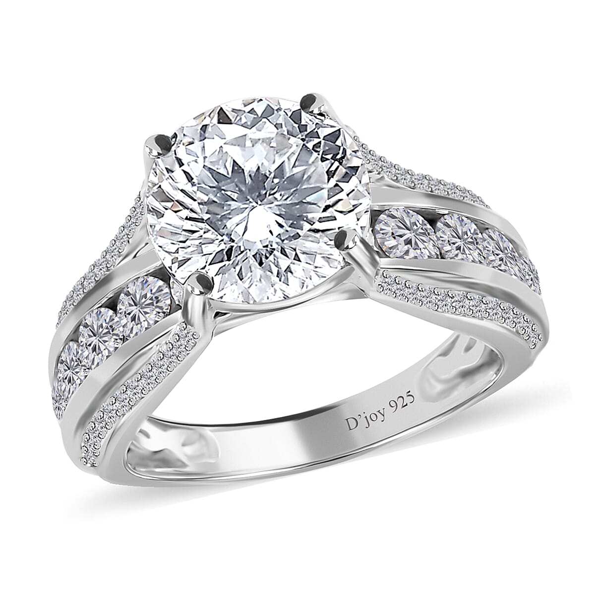 120 Facets Moissanite Bridge Ring in Platinum Over Sterling Silver, Promise Rings (Size 7.0) 4.85 ctw