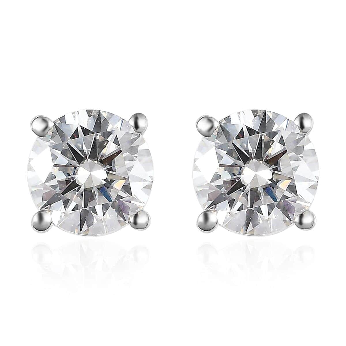 120 Facets Moissanite (Rnd 6.5mm) Stud Earrings in Platinum Over Sterling Silver 2.00 ctw