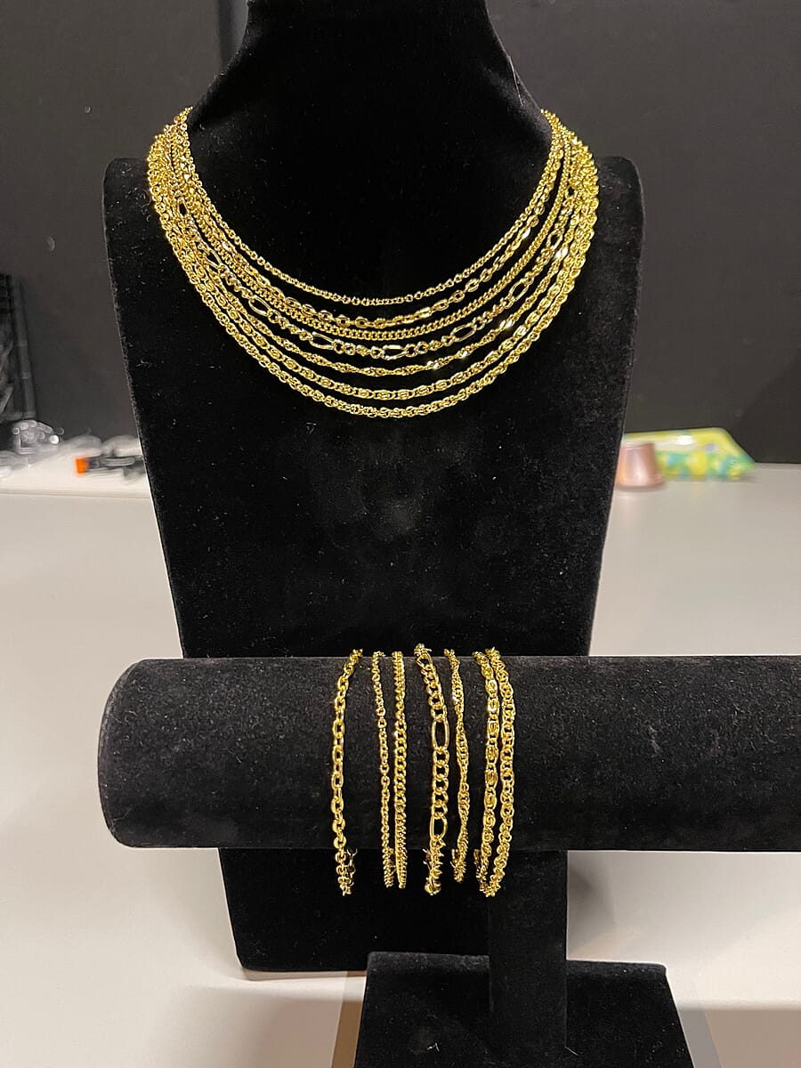 Unfathomably magnificent! The pristine set of 14 pieces is all you need to make a contemporary addition to your gorgeous look. Seven necklaces and seven bracelets in various patterns like a curb, rolo, Singapore, Figaro, cable, snake, and Spiga are designed with utmost precision. If you are the one who has been eyeing to buy some exquisite pieces, then this set of 14 pieces can end your search.