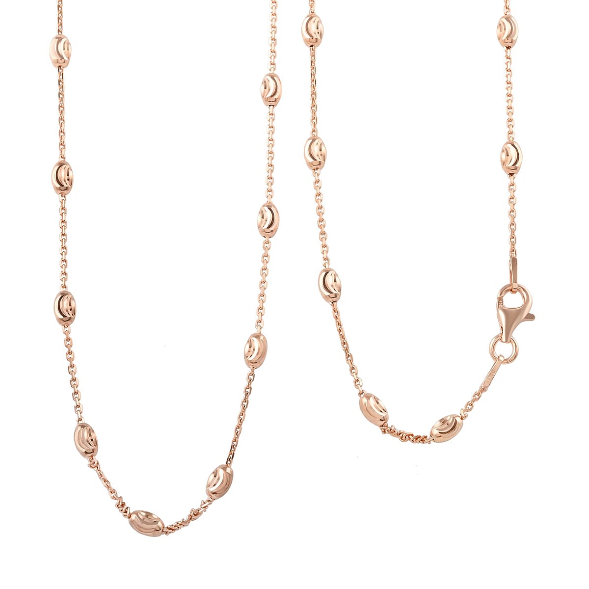 14K RG Over Sterling Silver 3mm Station Oval Moon Diamond Cut Chain Necklace (36 Inches) (7.90 g)