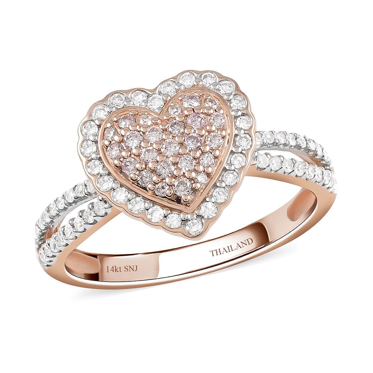 14K Rose Gold Natural Pink and White Diamond Heart Ring (Size 7.0) 0.40 ctw