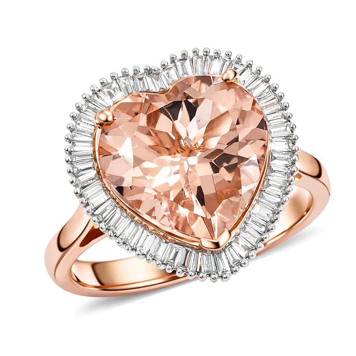 14K Rose Gold AAA Marropino Morganite, Diamond (G-H, I2) Heart Ring (Size 18.0) 5.40 ctw