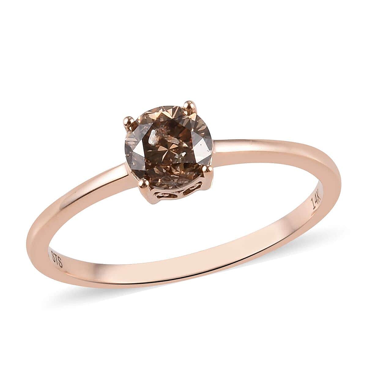 14K Rose Gold Natural Champagne Diamond Solitaire Ring (Size 8.0) 1.00 ctw