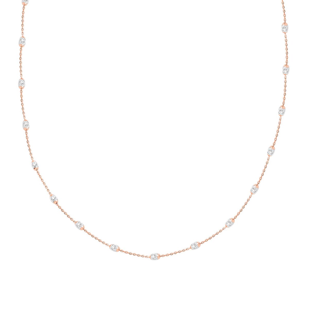 14K Rose Gold Over and Sterling Silver 3mm Station Oval Moon Necklace 24 Inches 5.40 Grams