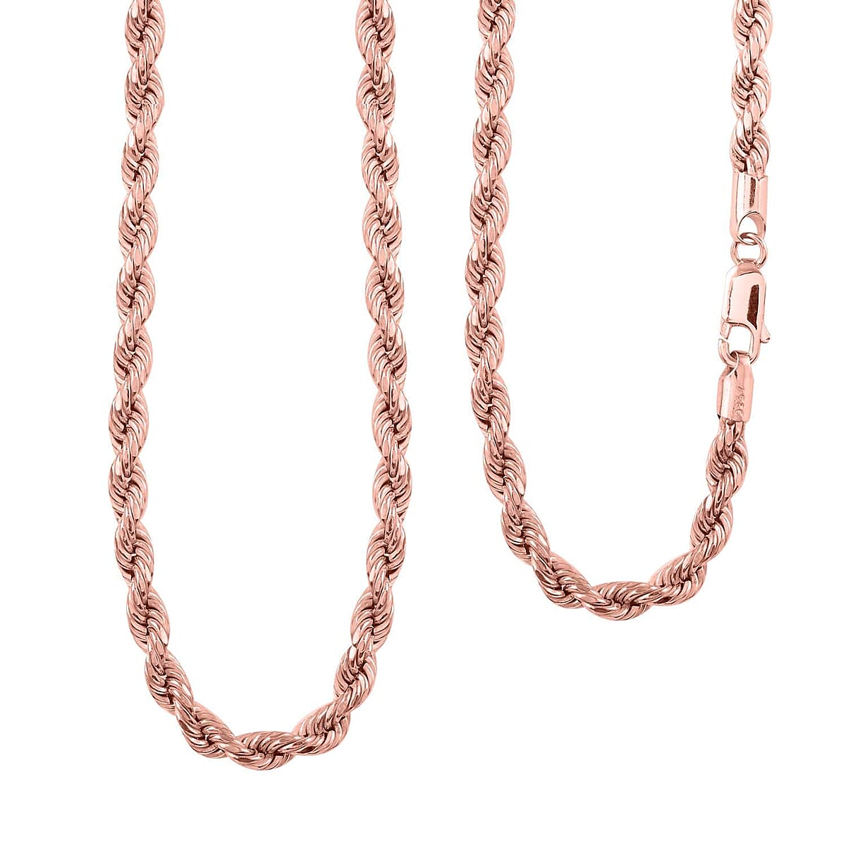14K Rose Gold Over Sterling Silver 4mm Rope Chain Necklace 24 Inches 15.70 Grams