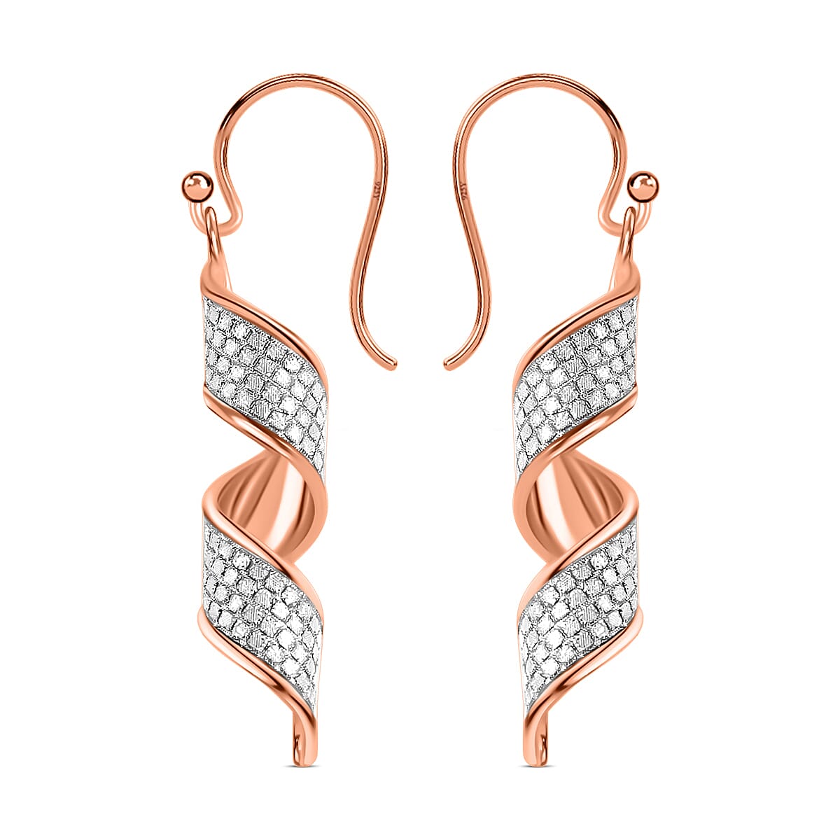14K Rose Gold Plated Sterling Silver Glitter Sandblast Spiral Earrings 3.20 Grams