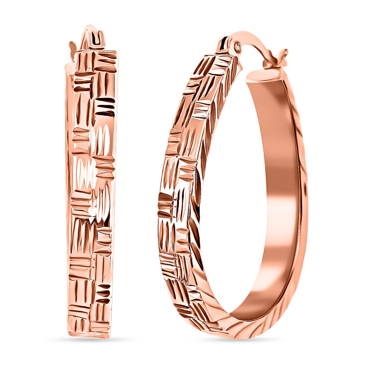 14K Rose Gold Plated Sterling Silver Textured Hoop Earrings 3.20 Grams