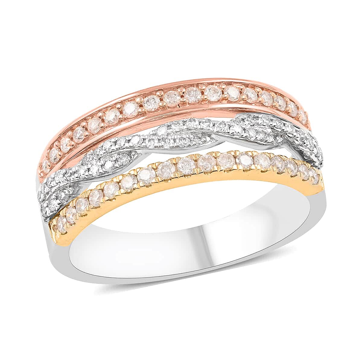 14K Tri-Tone Gold Diamond Ring (Size 7.0) 5.5 Grams 0.50 ctw