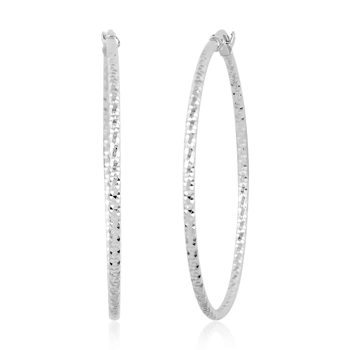 14K White Gold Diamond-Cut Hoop Earrings 2.30 Grams