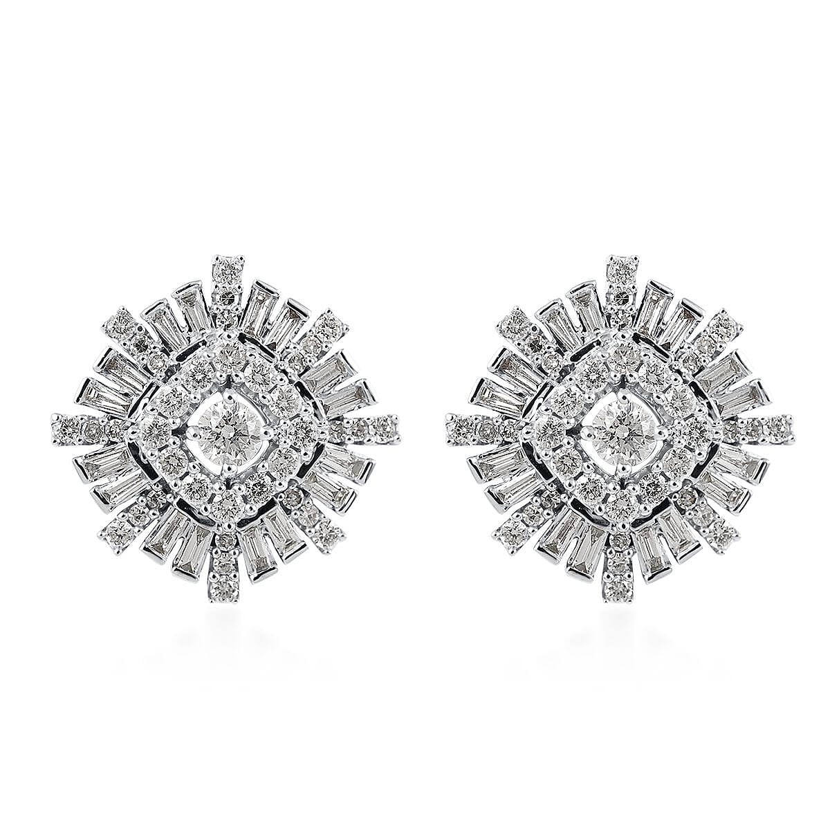 Make a statement with these snowflake design earrings. These brilliant clip-on closures have tapered baguettes and round diamonds set together in an illusion setting that looks like snowflakes cascading each other. Set brilliantly in 14k white gold allows a classic look of glam and glimmer, setting the tone for elegance for that special event.