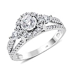 Discover a 14K white gold diamond ring featuring a prong-set diamond at its center, encircled by a halo of round diamonds. The split shank of this diamond halo ring is also adorned with round diamonds, enhancing its brilliance and sparkle.