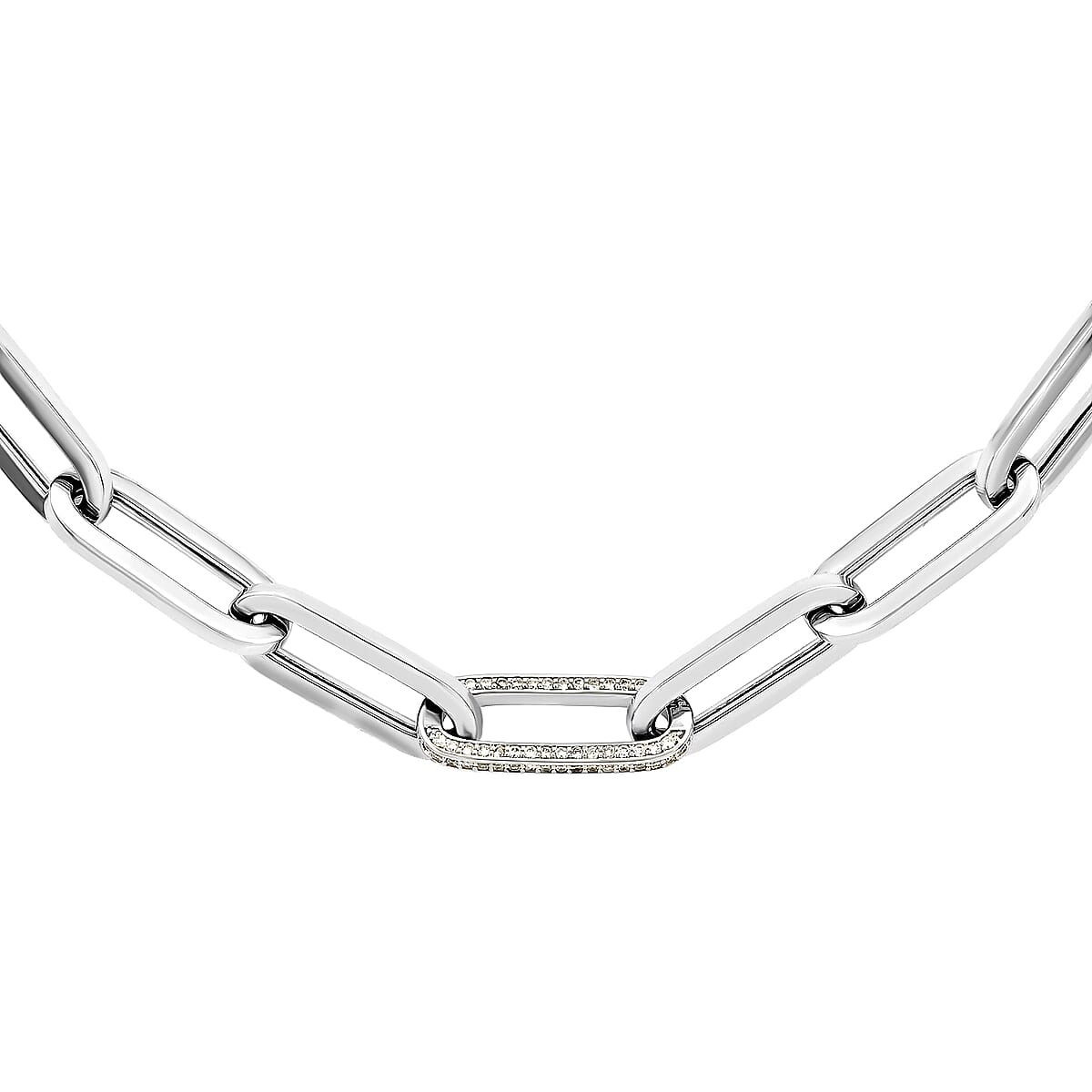 14K White Gold Diamond Paper Clip Chain Necklace 18 Inches 24.30 Grams 0.50 ctw