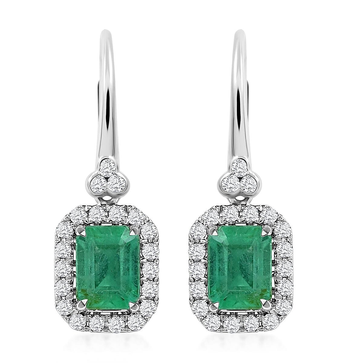 14K White Gold Emerald and G-H I2 Diamond Lever Back Earrings 2.10 ctw
