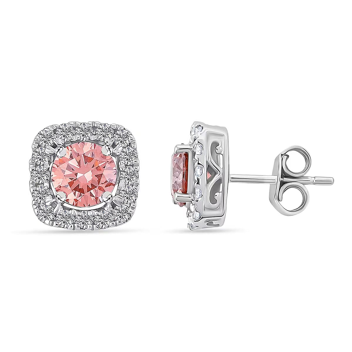 14K White Gold Luxuriant Lab Grown Pink Diamond (IR) and Lab Grown Diamond (VS-SI) Earrings 2.00 ctw