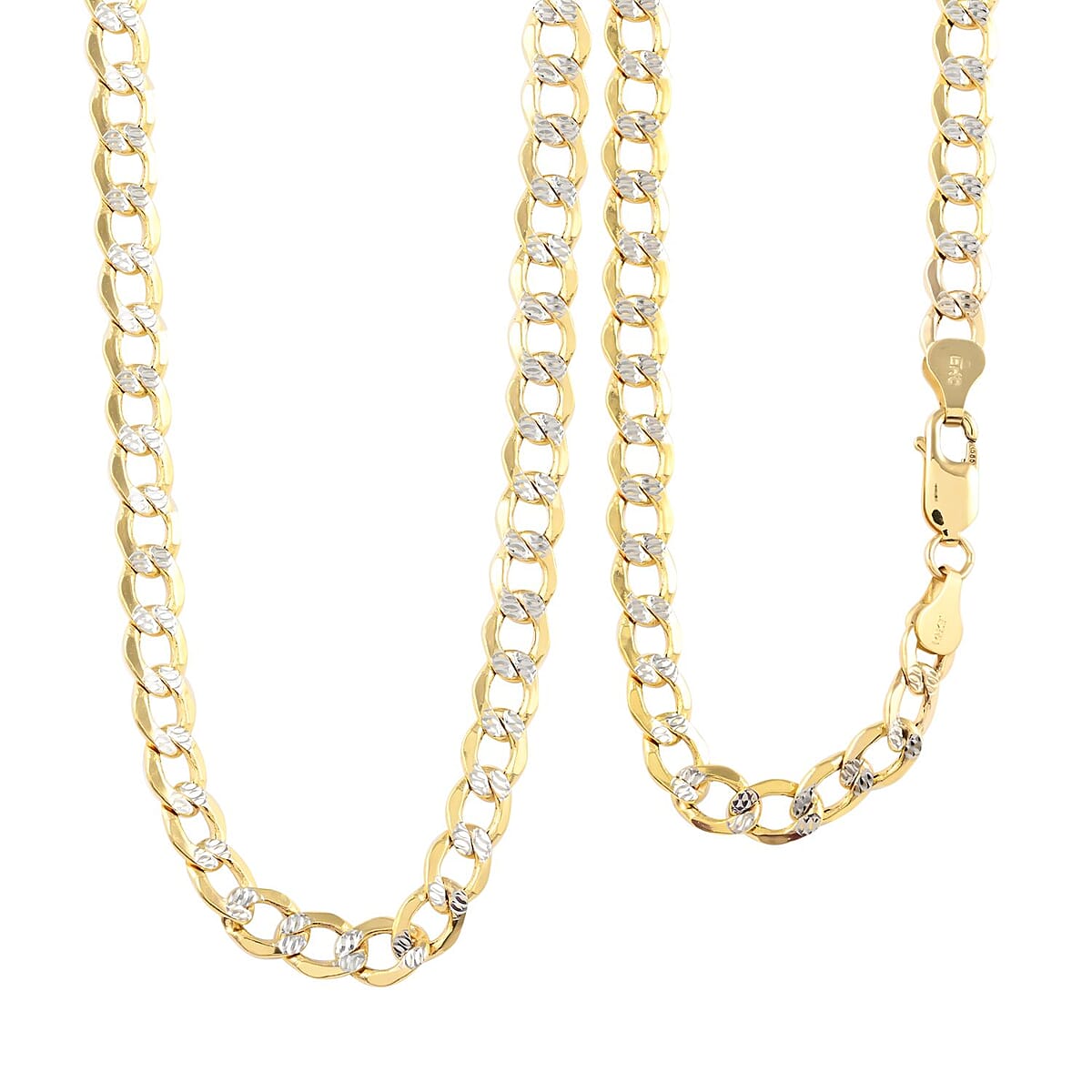 Influenced by the popular hip-hop culture jewelry, this Cuban Pave chain necklace symbolizes luxury and wealth. Once an important part of hip-hop style in the '70s and '80s, these Cuban pave chains have become increasingly popular. This glamorous two-tone Cuban link chain has an exceptional flat interlocks appeal, allowing this neckpiece to stand out. Designed as a variation of the standard cable link chain necklace, this Cuban-style necklace is well-detailed in the form of an interlocked twisted pattern-cut link chain. Fastened with this lobster lock enclosure, this matinee-length pave link necklace falls no short in proffering comfortable wearing. 14K yellow and white gold links add a touch of robustness to this Cuban Pave chain necklace.