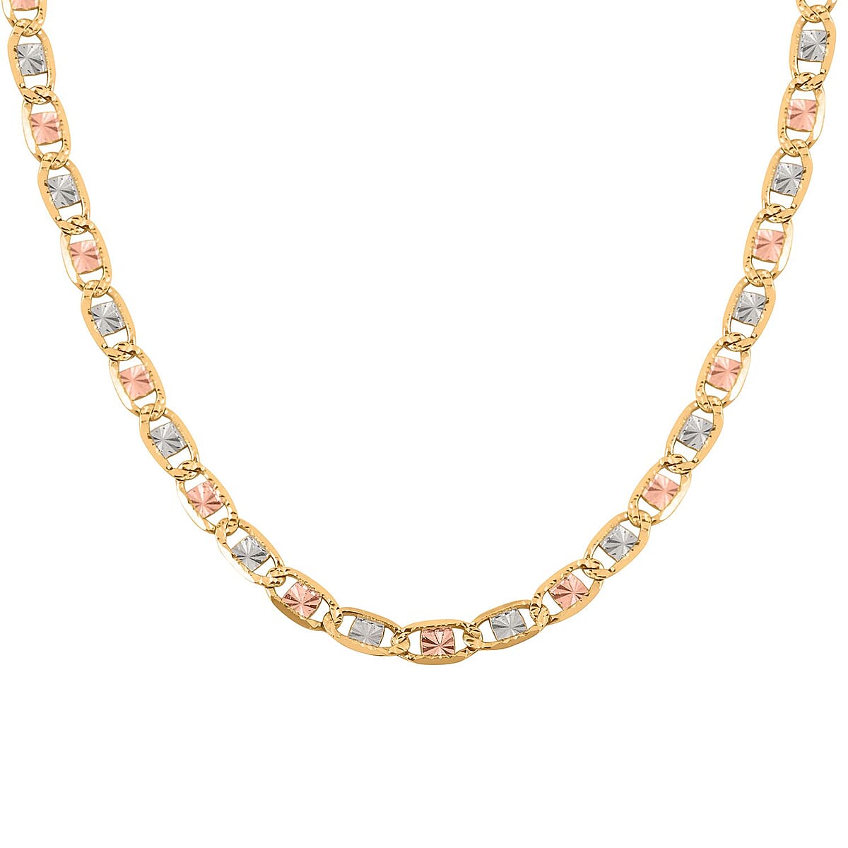 The 14K yellow gold Valentino chain necklace is a luxurious piece of jewelry that exudes elegance and sophistication. Crafted from high-quality 14K yellow gold, this necklace features a stunning Valentino chain design that is both sturdy and stylish. Inspired by the luster of diamonds, this gold necklace has given a unique texture, so it sparkles intensively. Like the cut of a diamond, this necklace's links feature angled facet Valentino links that create an enchanting appearance.