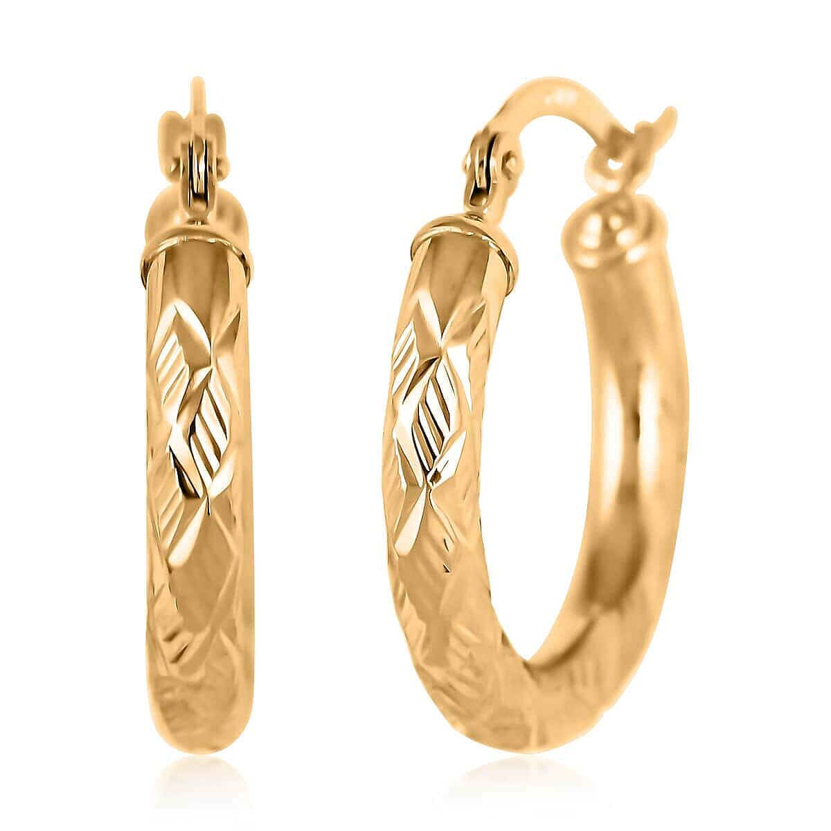 Step into a world of unrivaled elegance and sophistication with our exquisite 14K yellow gold diamond cut hoop earrings. Elevate your style to new heights as you adorn yourself with these mesmerizing hoops that effortlessly blend timeless allure with contemporary flair. Enchanting and radiant, these earrings promise to be the ultimate statement piece, capturing the attention of all who look at them. Don't resist the allure; experience the allure of luxury and indulge in the enchantment of our dazzling hoops today!