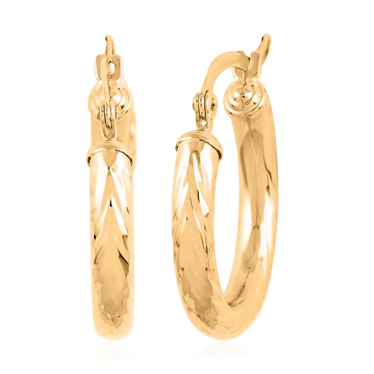 14K Yellow Gold 20X3mm Twisted Diamond-Cut Hoop Earrings