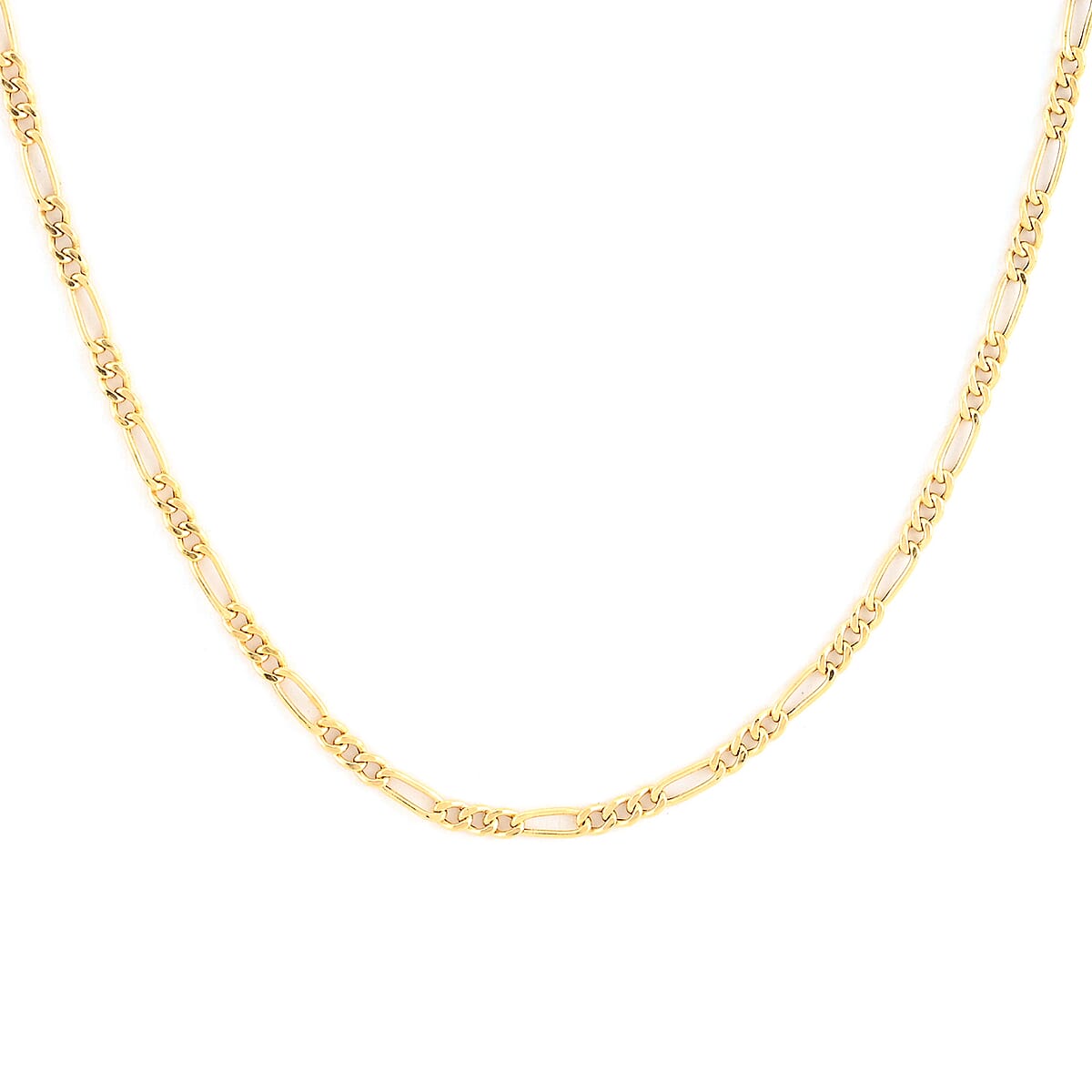 Instantly transform your style into classy with this beautiful figaro chain necklace. This unique figaro chain necklace design consists of three circular links, followed by a single lengthened oval link, interlocked together to form a chain. Named after an Italian Opera, The Marriage of Figaro, the Figaro chain is a classic yet highly popular Italian chain that's been worn for centuries. This figaro chain is drenched in 14K yellow gold for extra shine. You are also going to love the easy-to-use designer clasp that will allow you to put on and take off this piece without a helper.