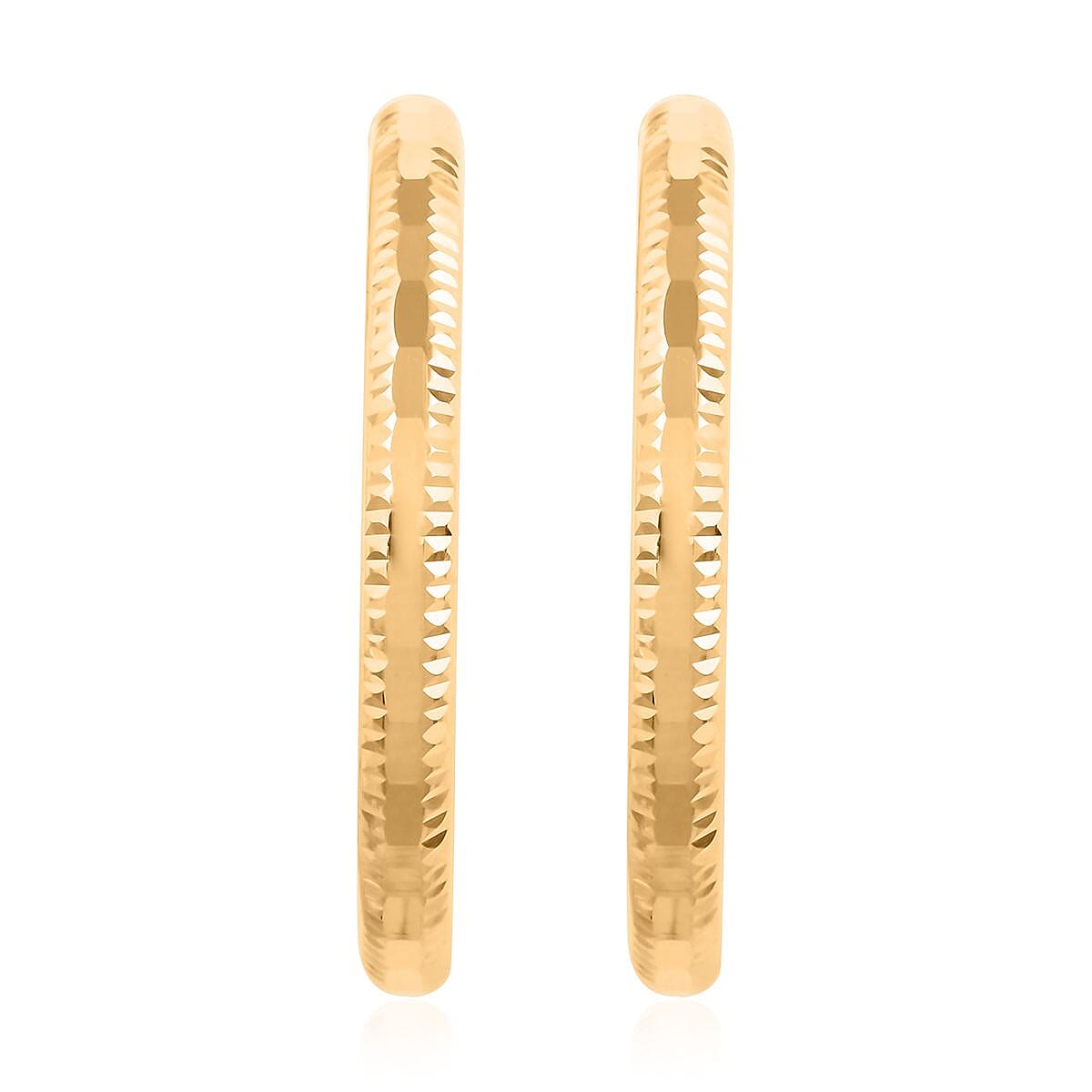 These 14K yellow gold diamond-cut hoop earrings are the perfect accessory for any occasion. Whether you are dressing up or dressing down, they will add a touch of elegance to your outfit. The sleek and classy design, combined with the intricate craftsmanship and comfortable wear, make these earrings a must-have for any jewelry collection.