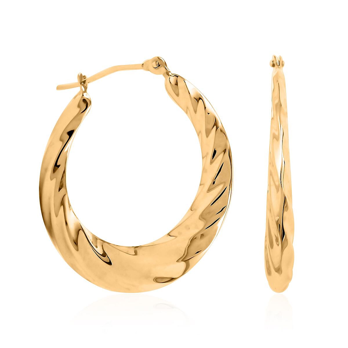 14K Yellow Gold 3X25MM Swirl Hoop Earrings 1.50 Grams