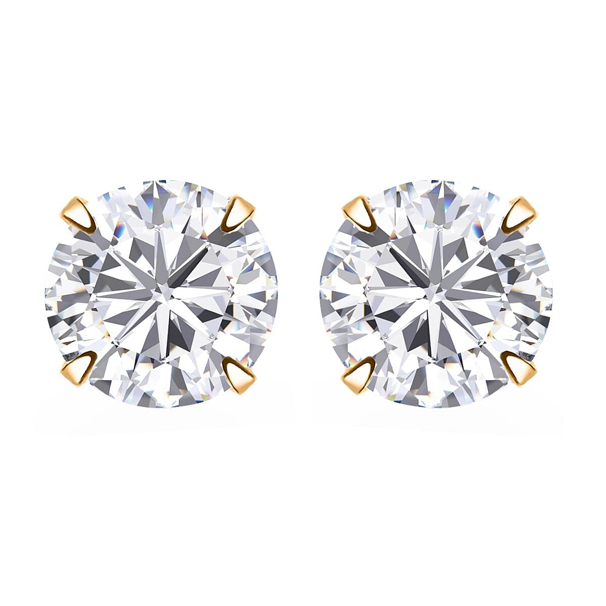 14K Yellow Gold 6mm Crystal Solitaire Stud Earrings