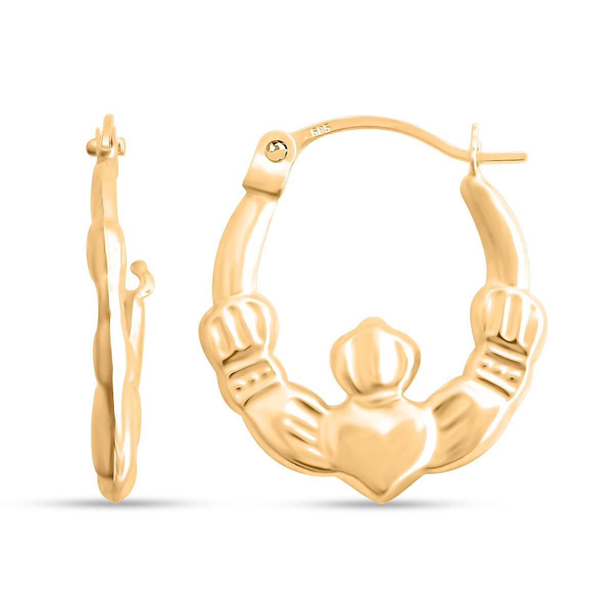 14K Yellow Gold Claddagh Hoop Earrings (0.50 g)