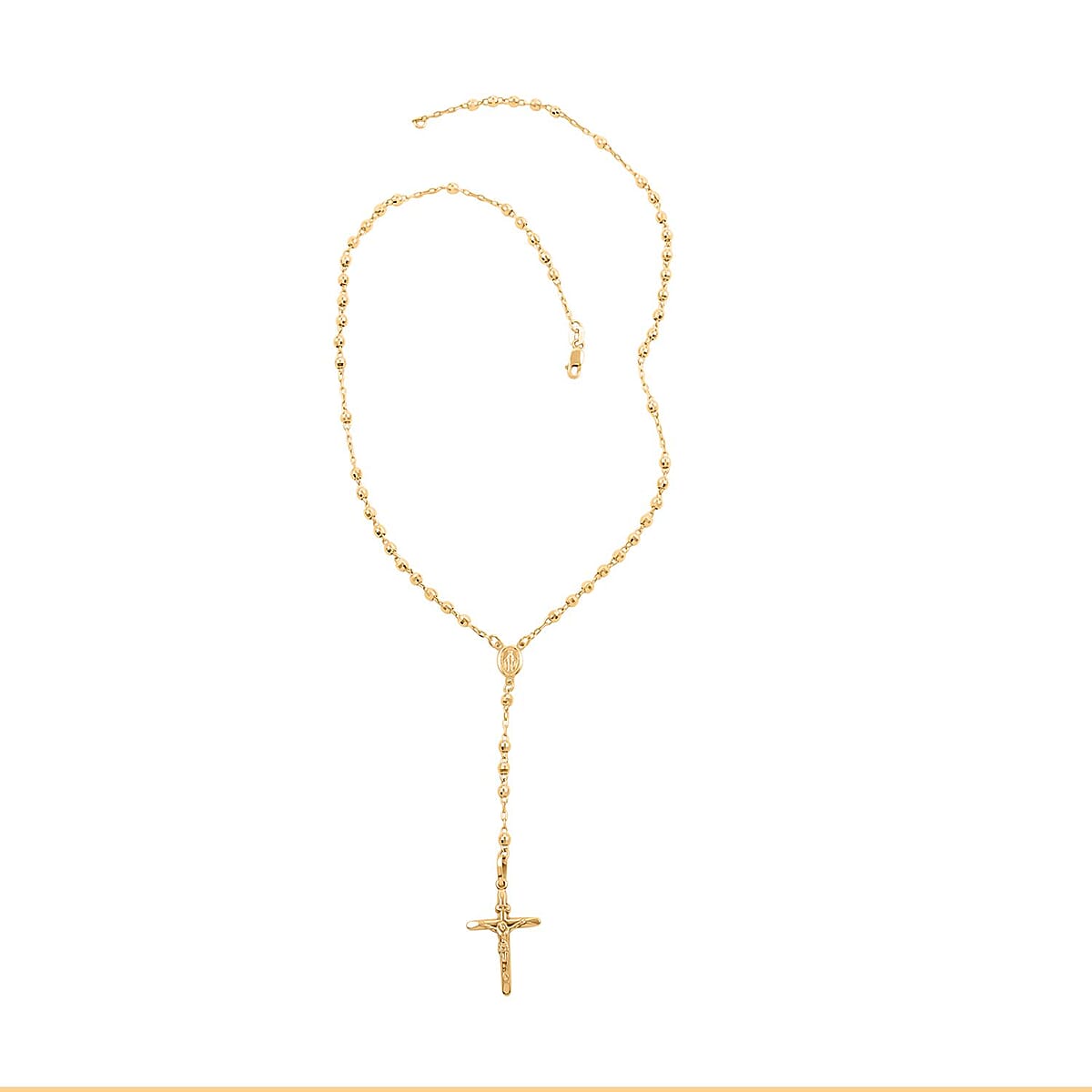 The rosary beads necklace is beautiful and elegant jewelry designed for those seeking a unique blend of faith and fashion. This necklace is made of high-quality beads, each one diamond-cut to give it a brilliant sparkle and shine. The beads are strung together to form a traditional rosary pattern, with a crucifix pendant hanging from the center. The necklace is made with a durable and sturdy chain that is both comfortable and lightweight, making it ideal for daily wear. The necklace also features a lobster clasp closure, ensuring that it stays securely fastened.