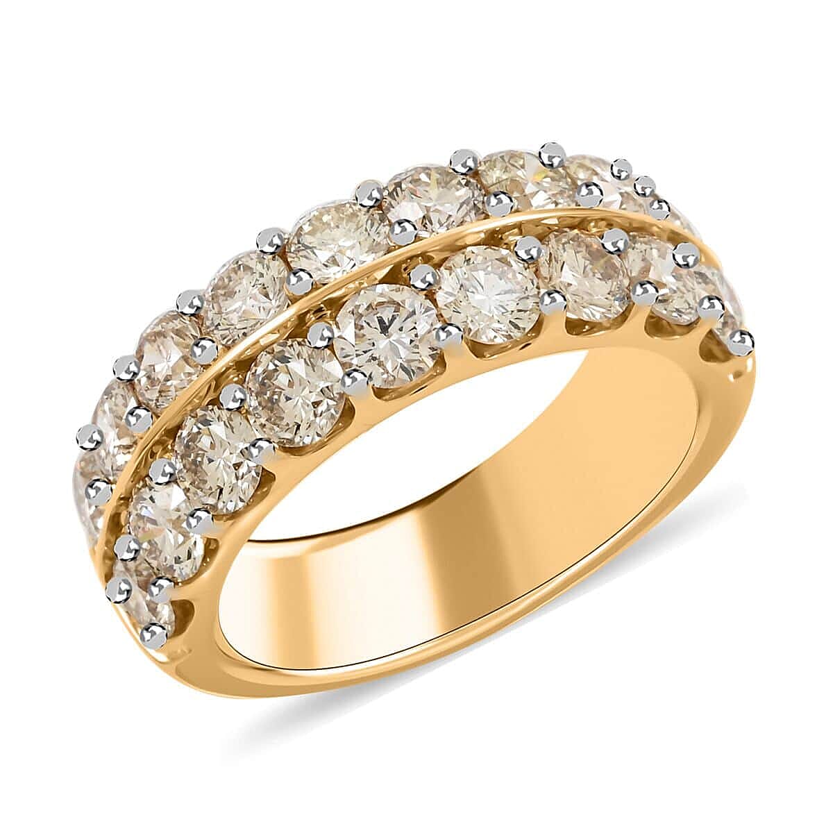 Luxury takes center stage with our 14K Yellow Gold Diamond Ring. Exquisitely crafted, this band ring showcases two rows of glittering diamonds, magnifying the inherent opulence of gold. A timeless symbol of prestige, this diamond band ring, laden with dazzling gems, conveys an air of sophistication and enduring charm that is unparalleled, making it the perfect treasure for any woman's collection.