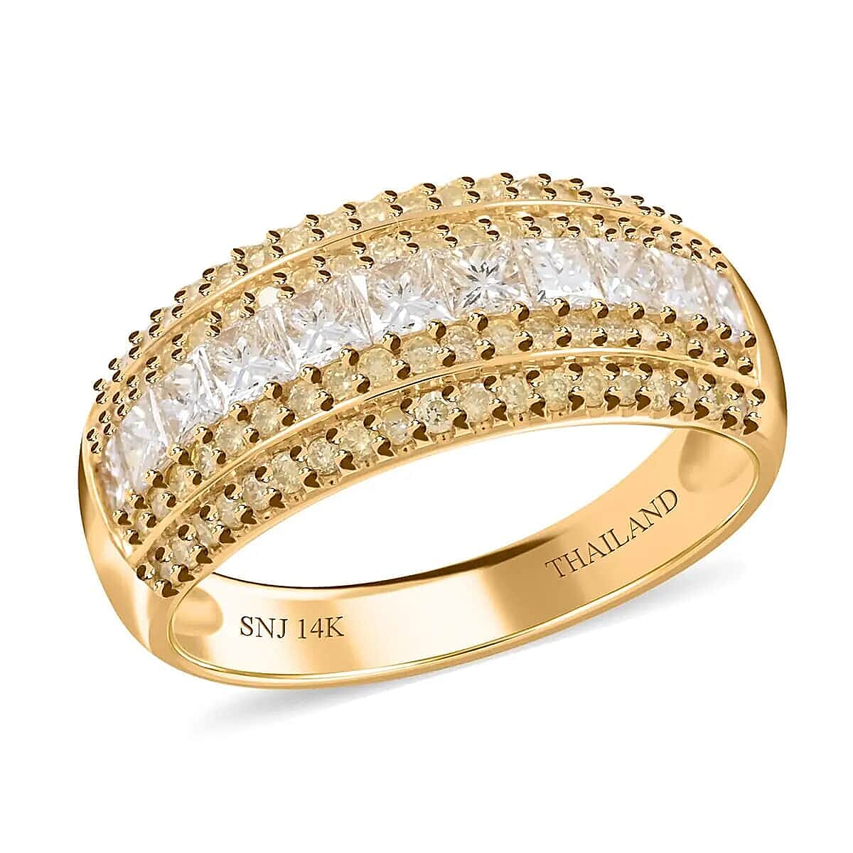 14K Yellow Gold Diamond Ring, Natural Yellow and White Diamond Ring, SI Diamond Ring, Gold Ring, Multi Row Diamond Ring, Gold Wedding Rings 1.00 ctw (Size 12)