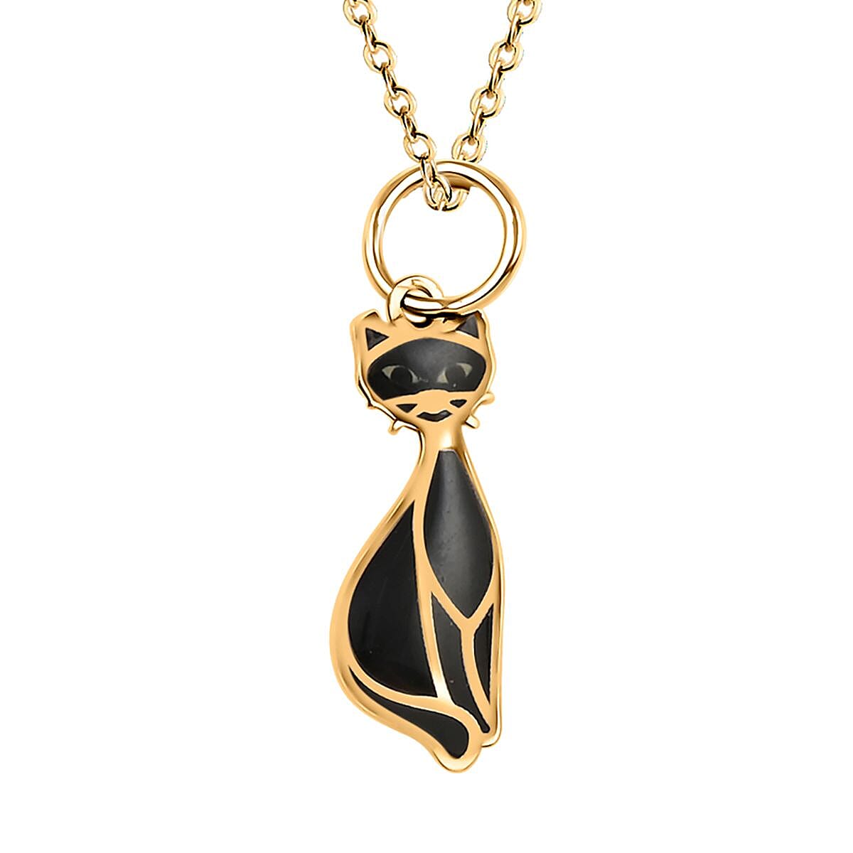 14K Yellow Gold Enamel Black Cat Pendant with Necklace 16-18 Inches 1.10 Grams