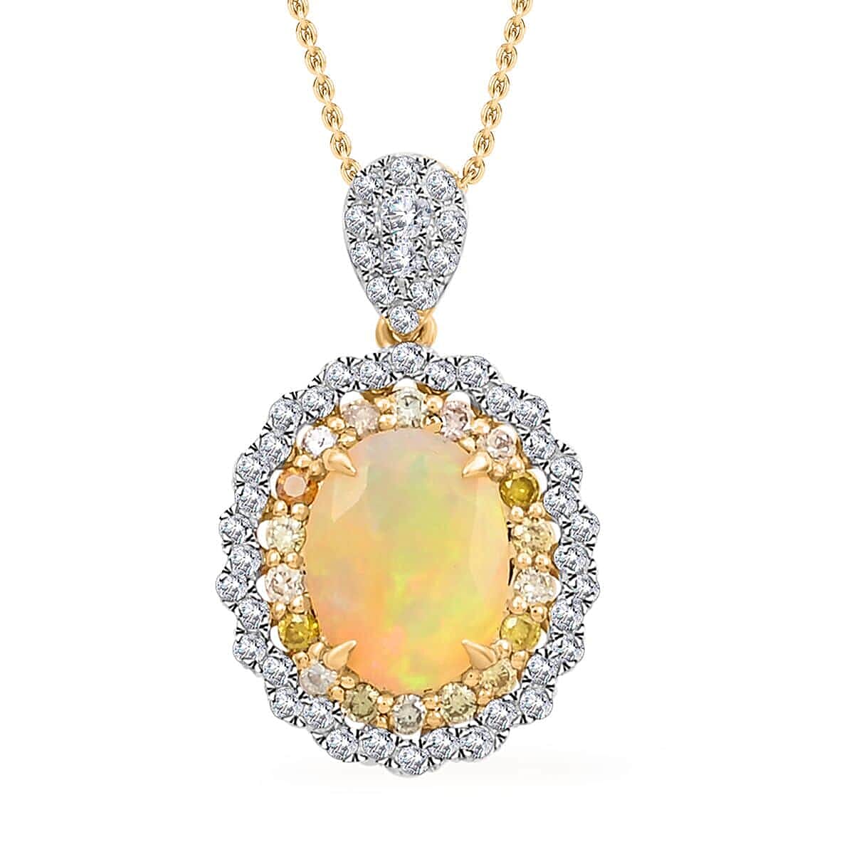 14K Yellow Gold Ethiopian Welo Opal and I2 Multi Diamond Pendant Necklace 18 Inches 1.50 ctw
