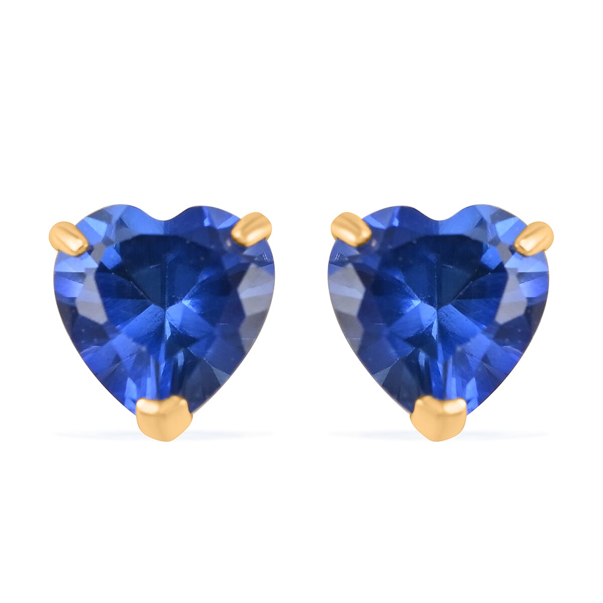 14K Yellow Gold Lab Created Blue Sapphire Heart Stud Earrings 0.60 ctw