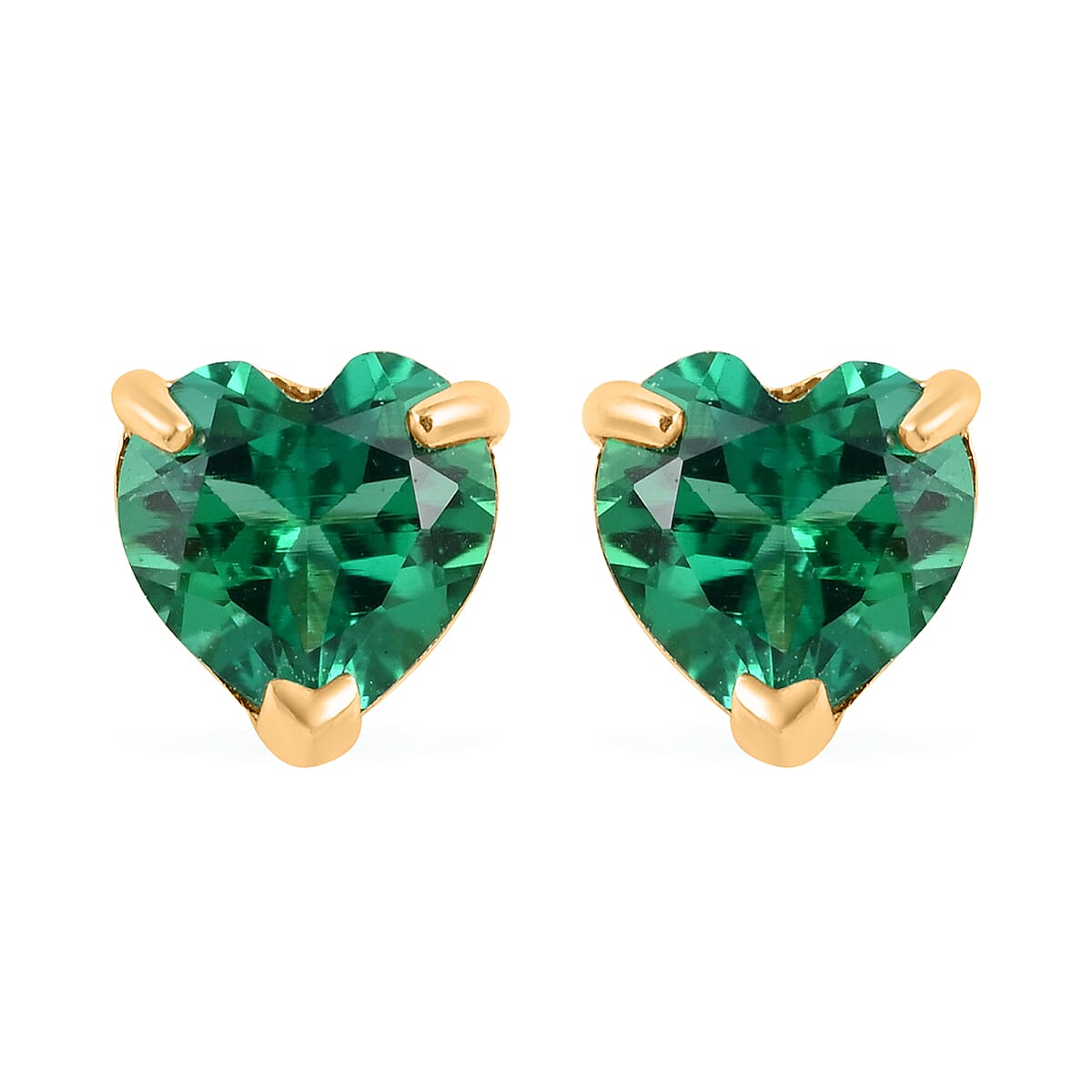 14K Yellow Gold Lab Created Emerald Heart Stud Earrings 0.40 ctw