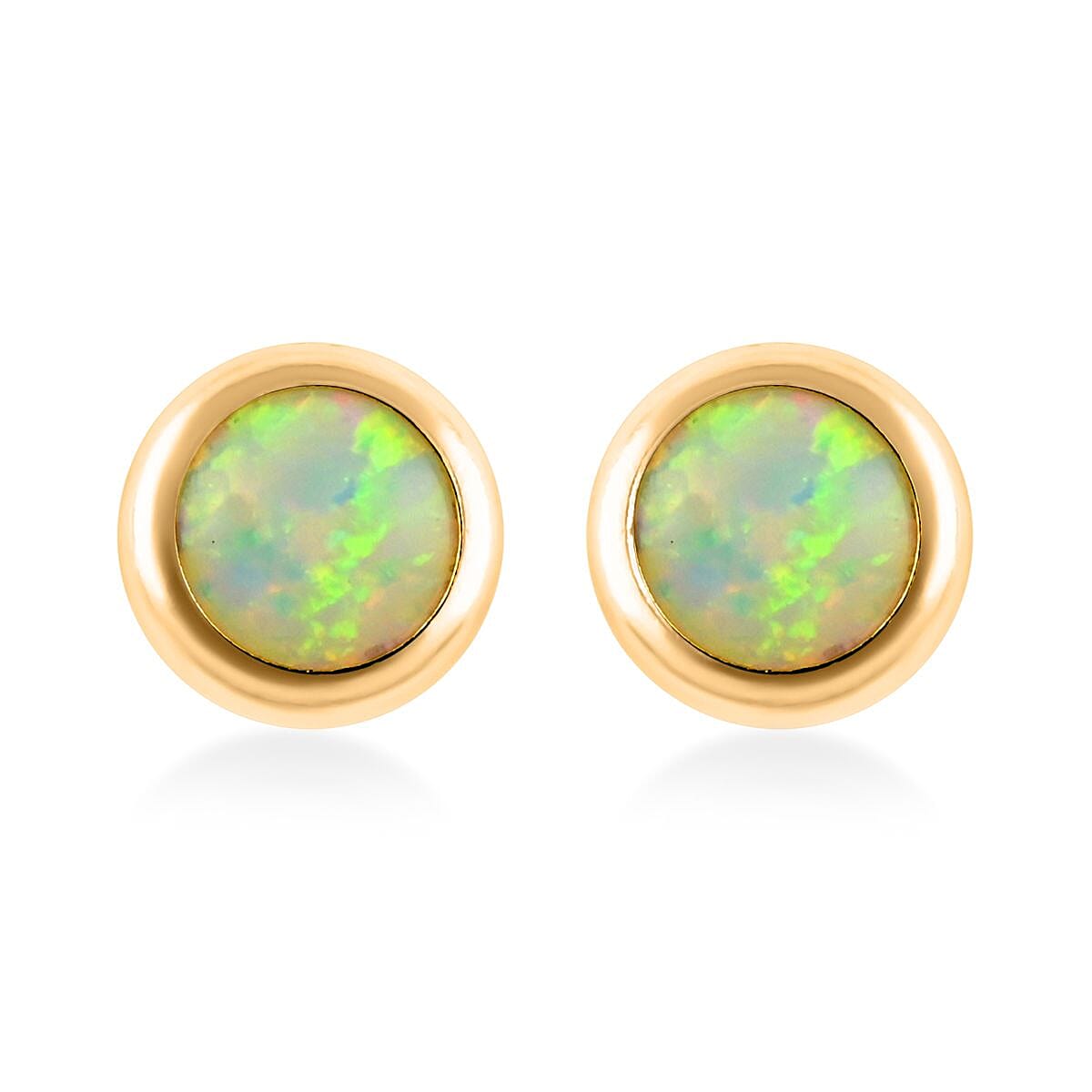 14K Yellow Gold Lab Created Opal Round Stud Earrings 0.20 ctw