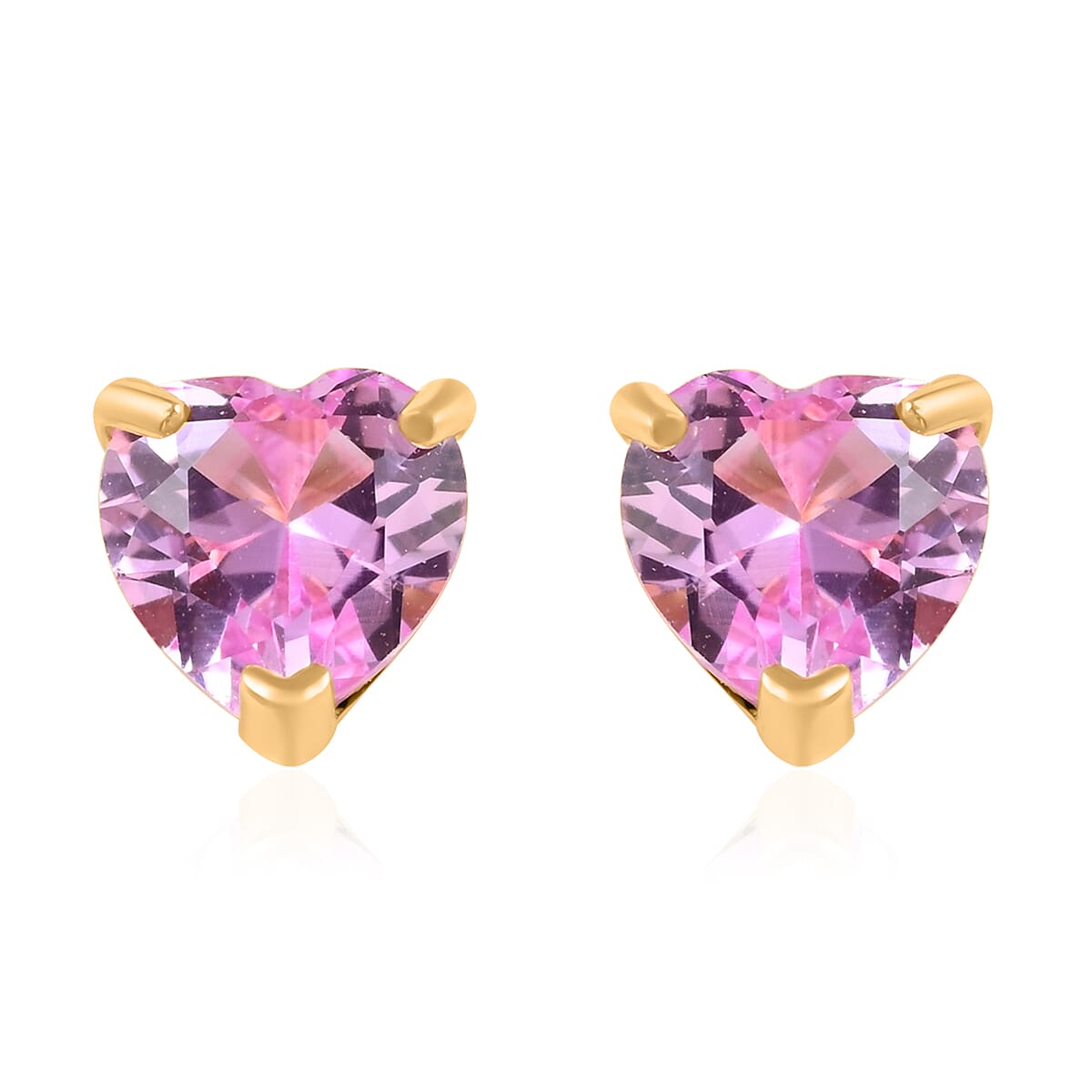 14K Yellow Gold Lab Created Pink Sapphire Heart Stud Earrings 0.60 ctw