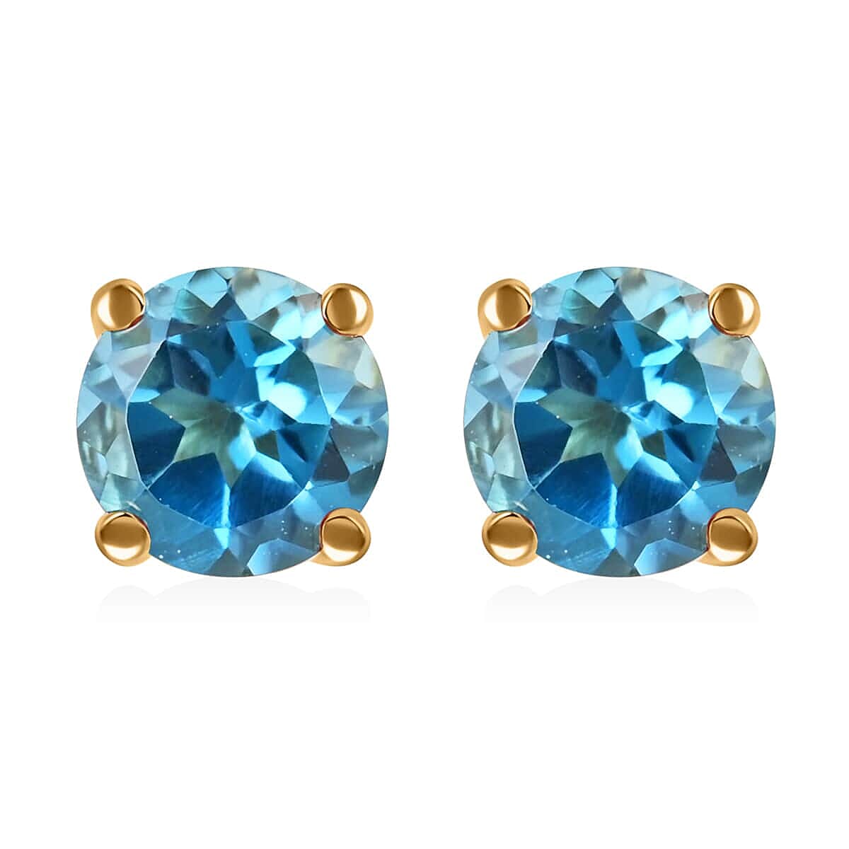 14K Yellow Gold London Blue Topaz Round Stud Earrings 0.60 ctw