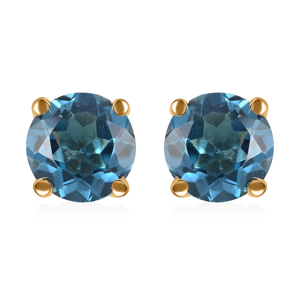 14K Yellow Gold London Blue Topaz Round Stud Earrings 1.15 ctw
