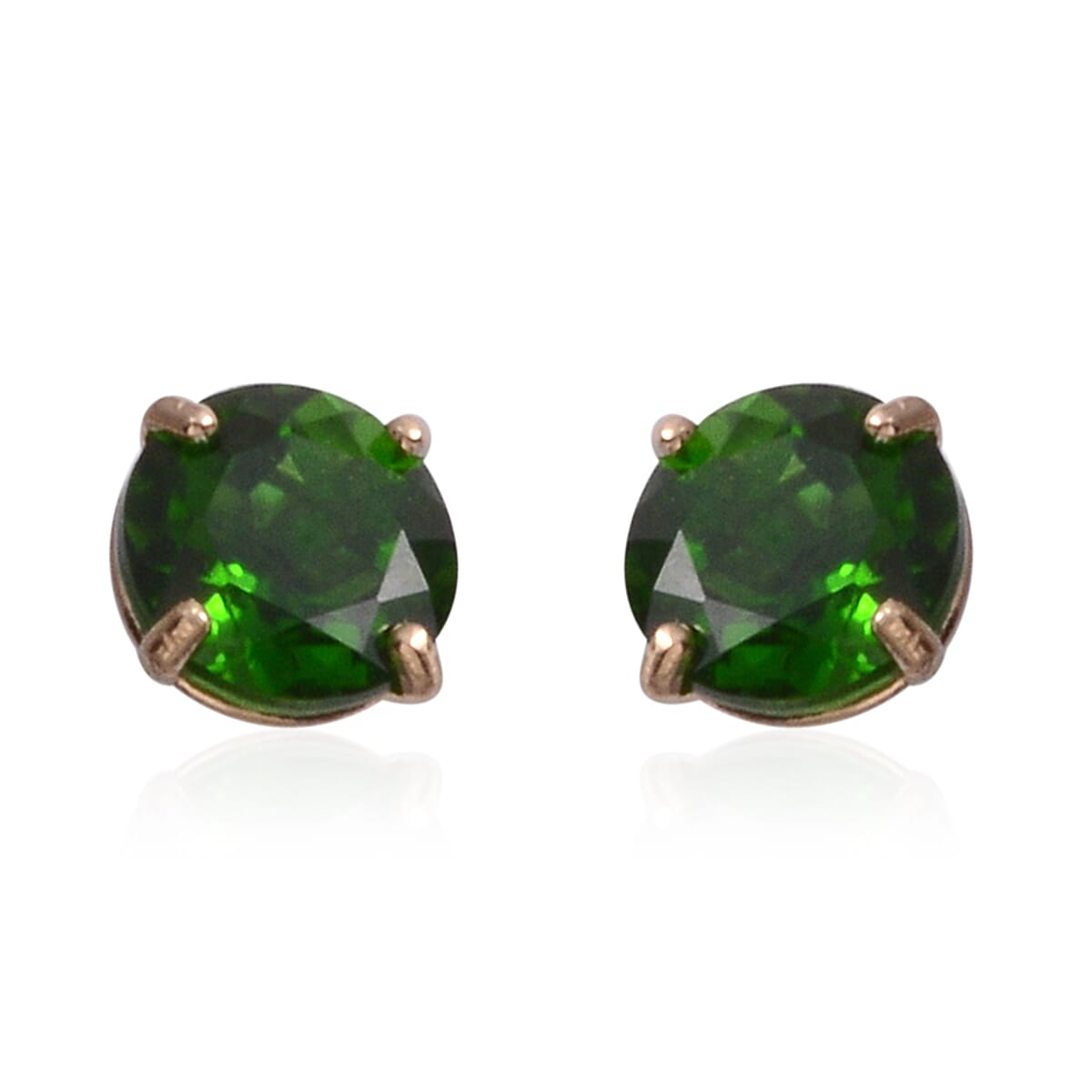 14K Yellow Gold Natural Chrome Diopside Stud Earrings 1.00 ctw