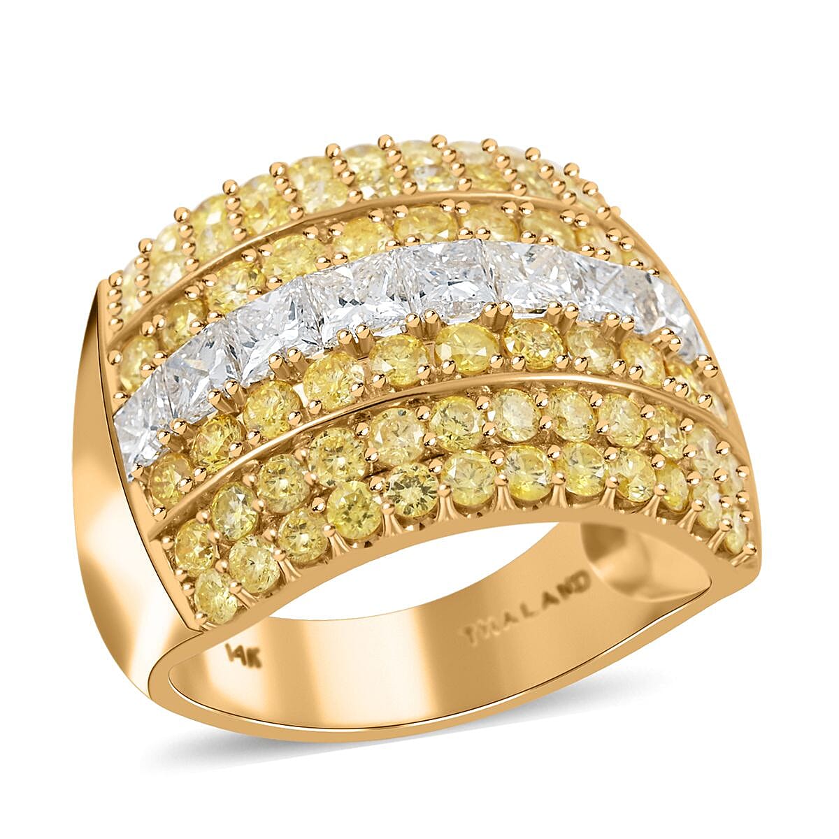 14K Yellow Gold Natural White and Yellow Diamond (G-SI2) Ring (Size 9.0) 7.20 Grams 3.00 ctw