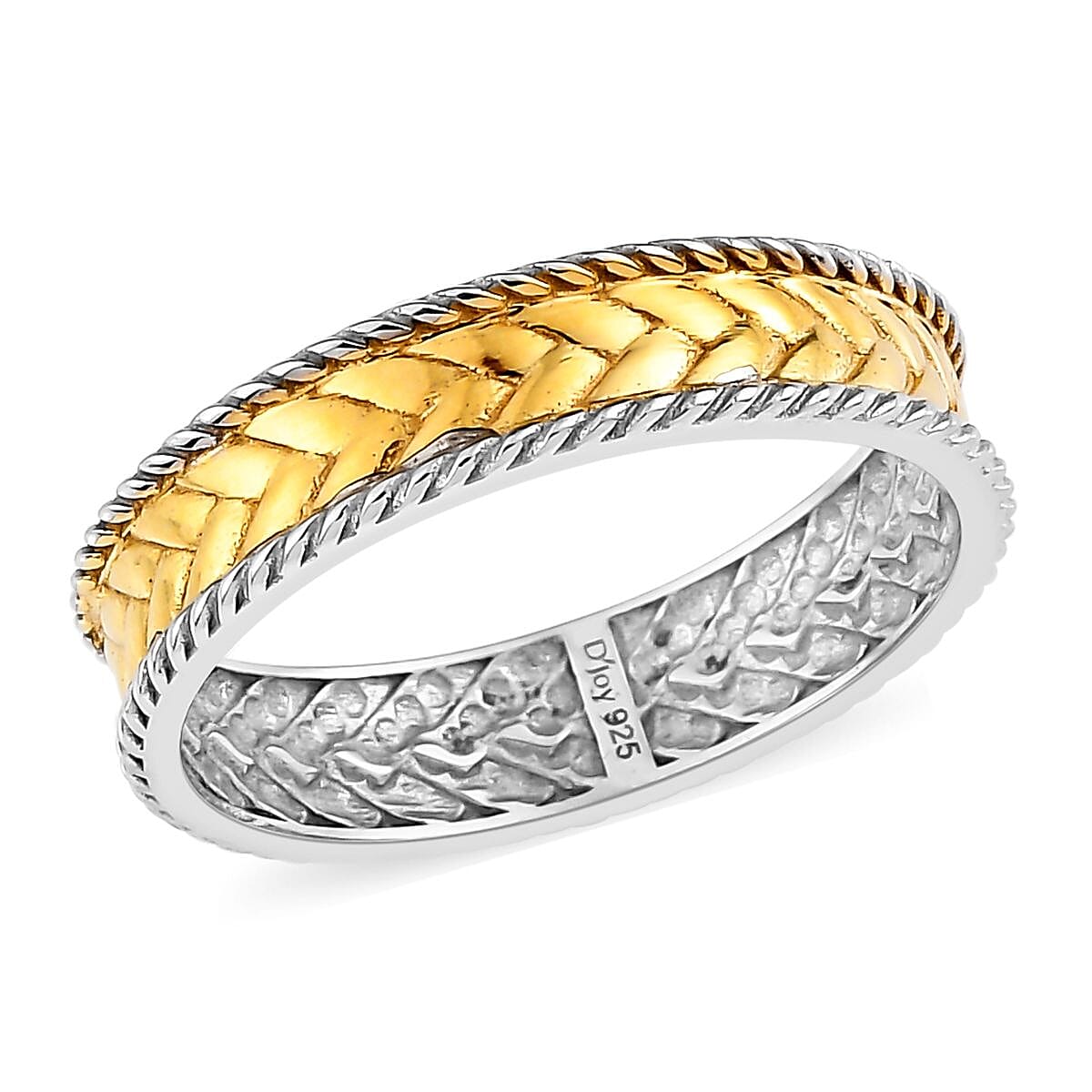 Unleash your sophistication with our 14K yellow gold over sterling silver men's ring. This sleek ring features a smooth intertwined v-shape design in a radiant yellow finish. The charm of the design is further enhanced by the rope-textured periphery, resulting in an embodiment of masculinity and refinement.