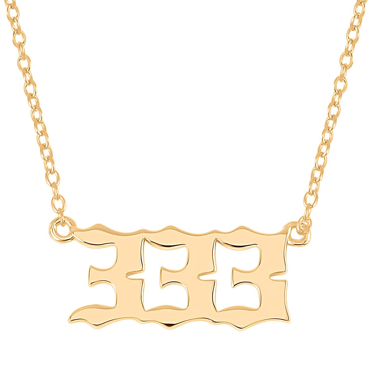 14K Yellow Gold Over Sterling Silver Angel Number 333 Design Necklace 16-18 Inches Jewelry Gift Box
